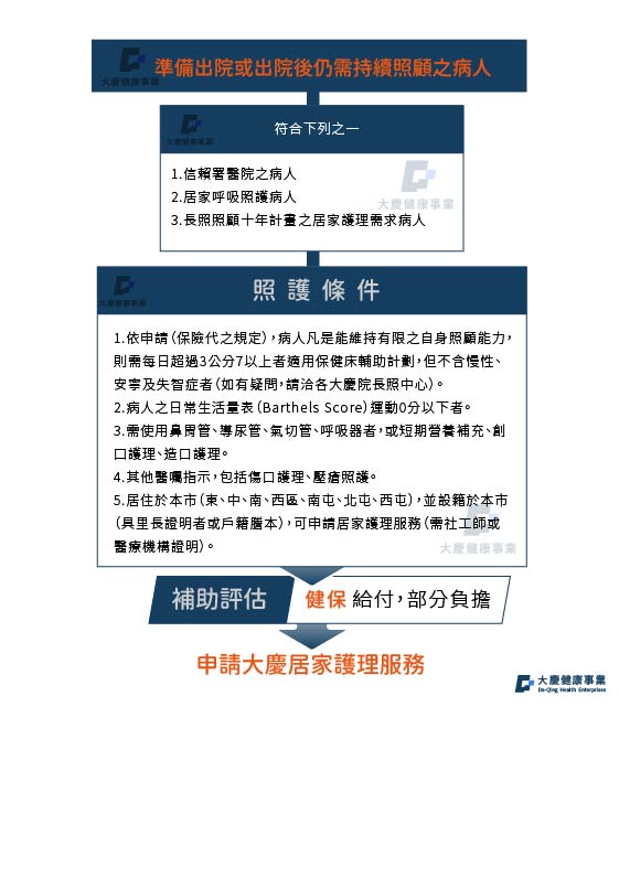 2. 非住院病人:家屬電話直接聯絡或經長照中心轉介,由居家護理師實際評估後收案。